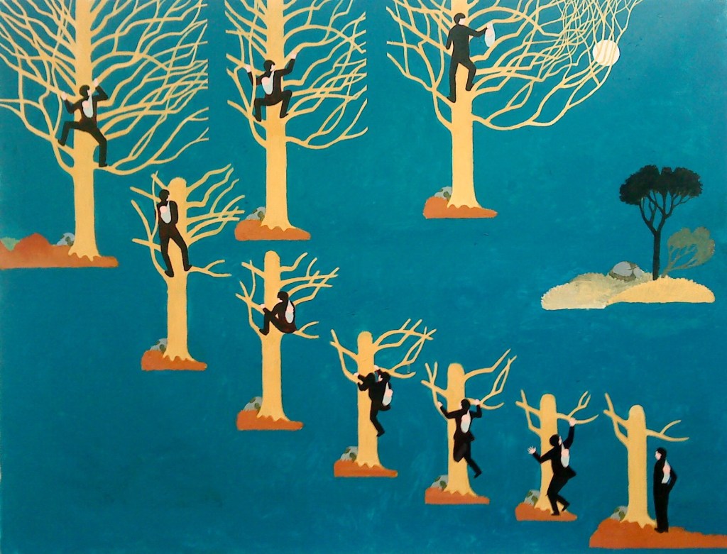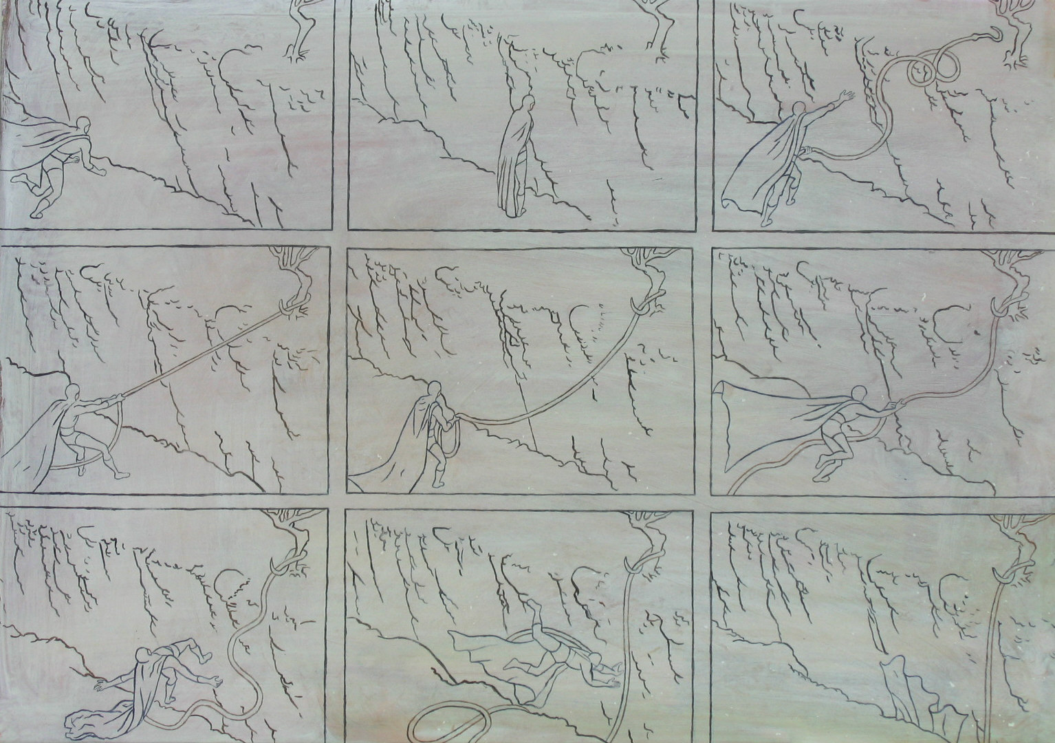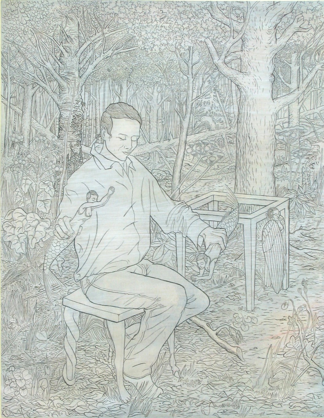 Detaljfragmenten kändes alldeles för bundna av sin förlaga så jag började med att släppa detta förhållningssätt och började uppfinna figurer istället.