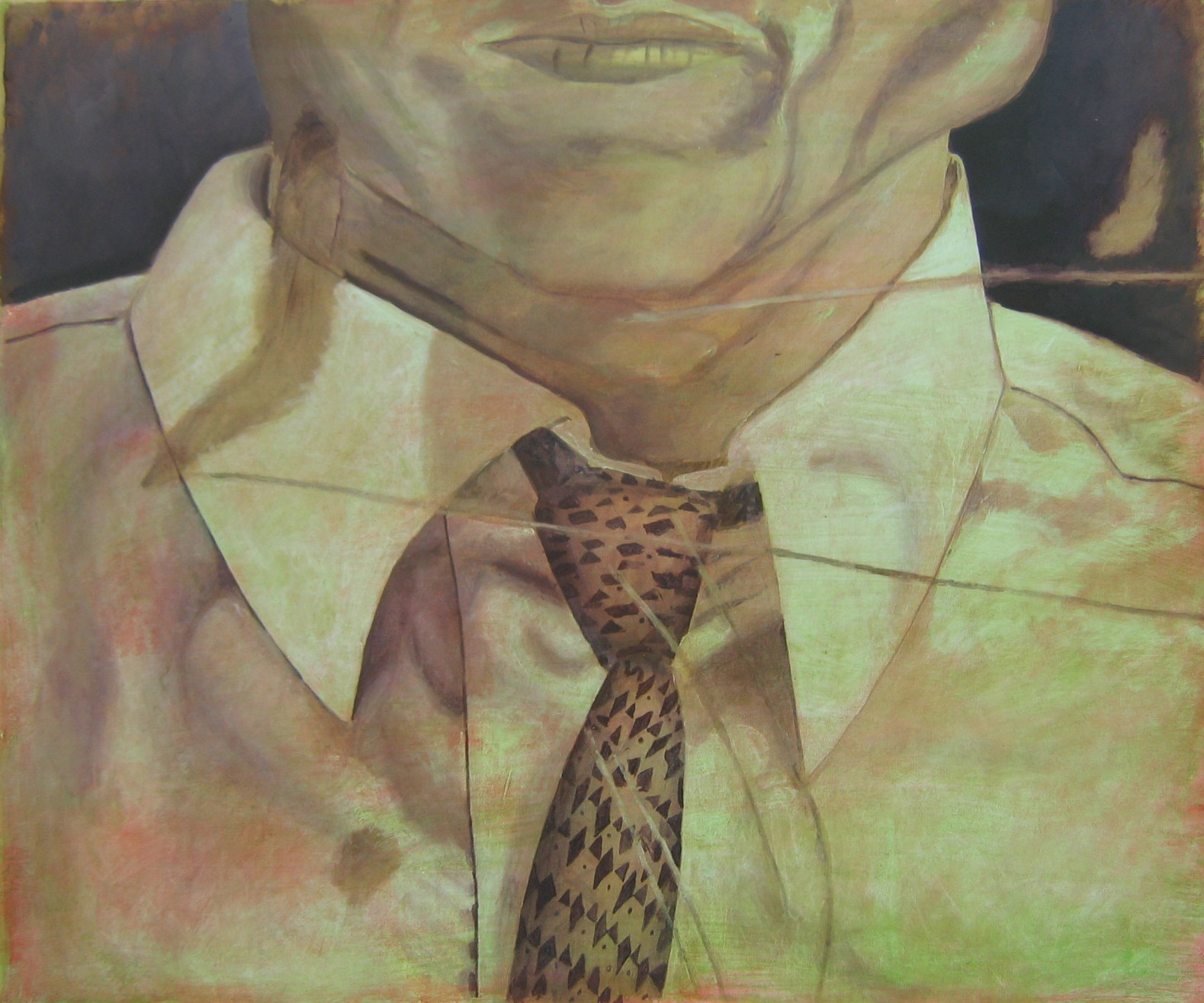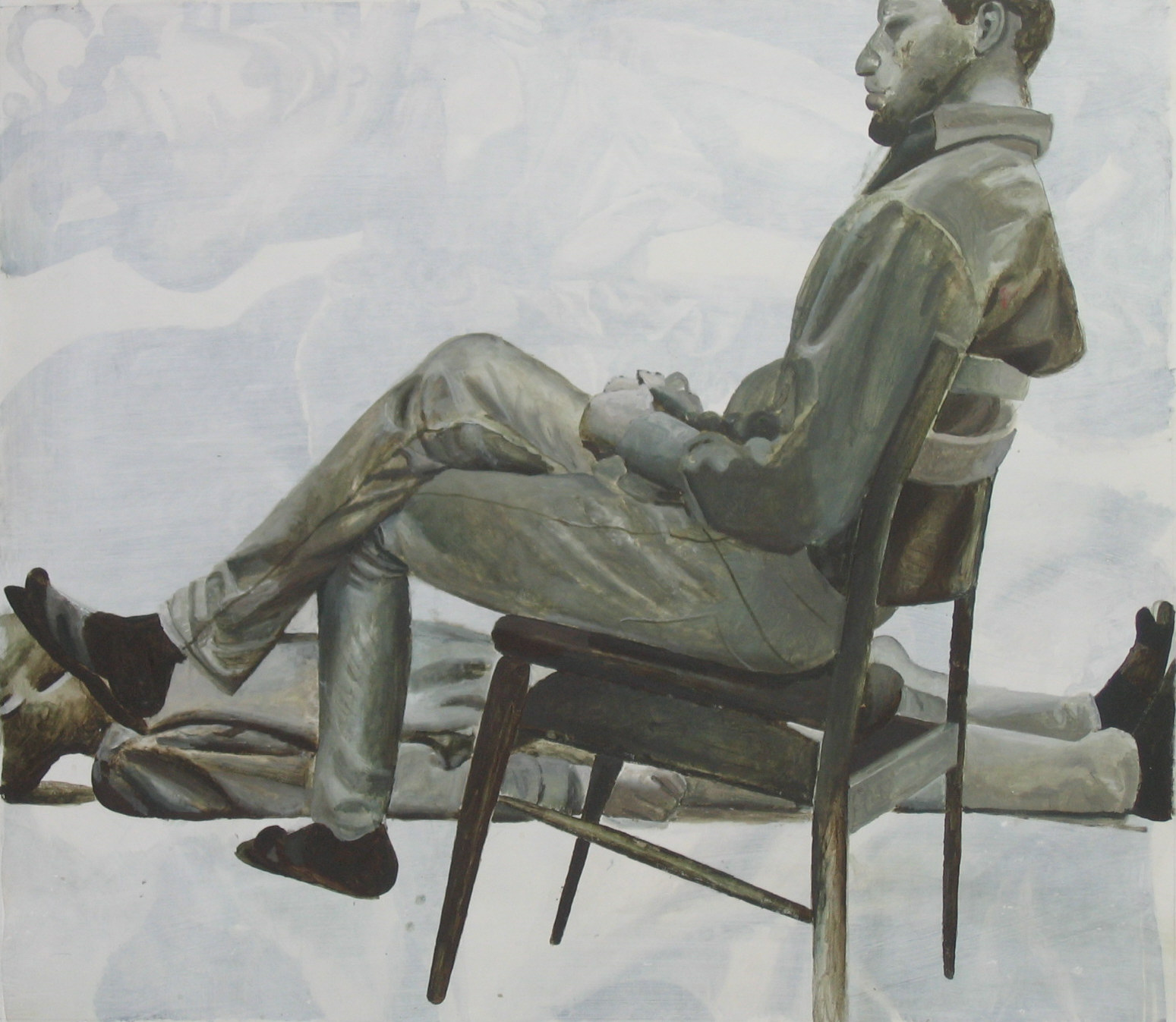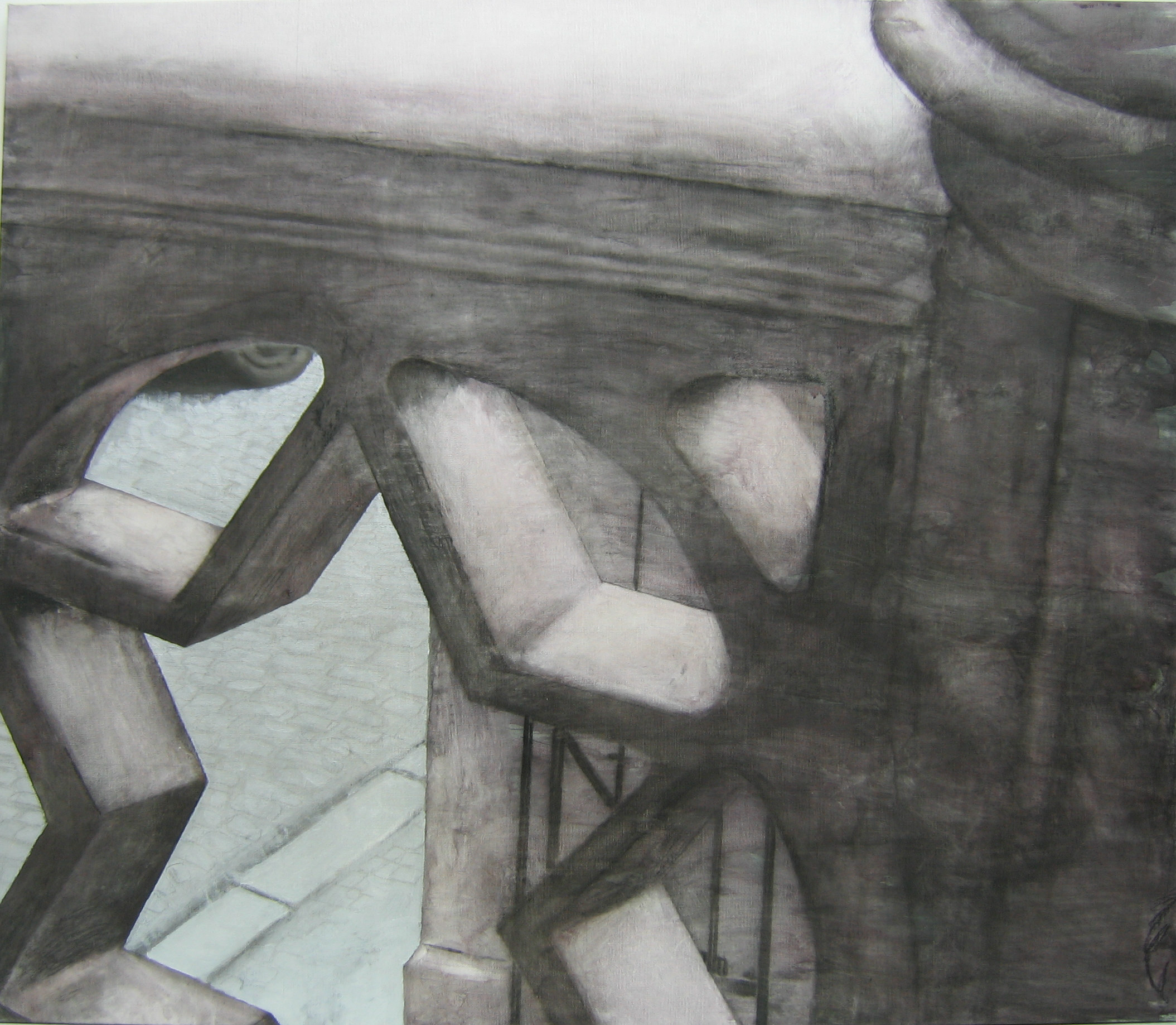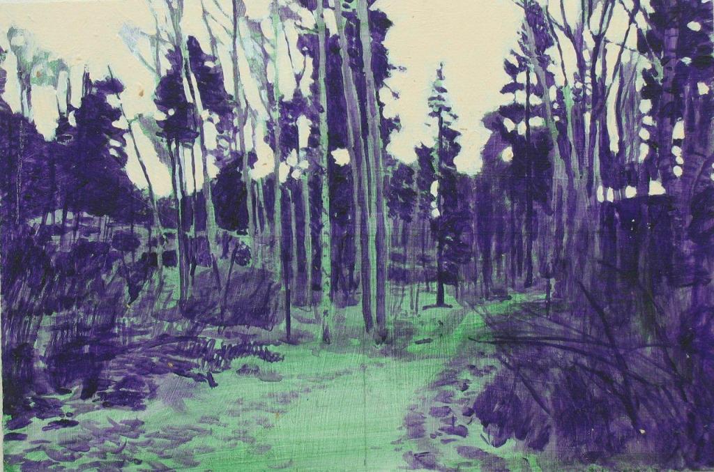 När jag arbetat med figurationerna ett tag tyckte jag att de var för lättviktiga, att de saknade tyngd och det var för lätt att bara sätta samman dem. Inspirerad av Luc Tuymans och Michael Haneke började jag göra utsnitt ur bilder, teckna av dem och sedan måla av teckningen.