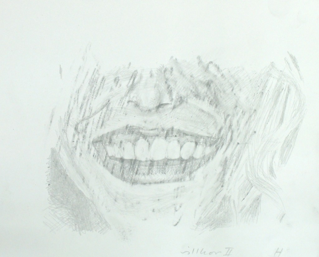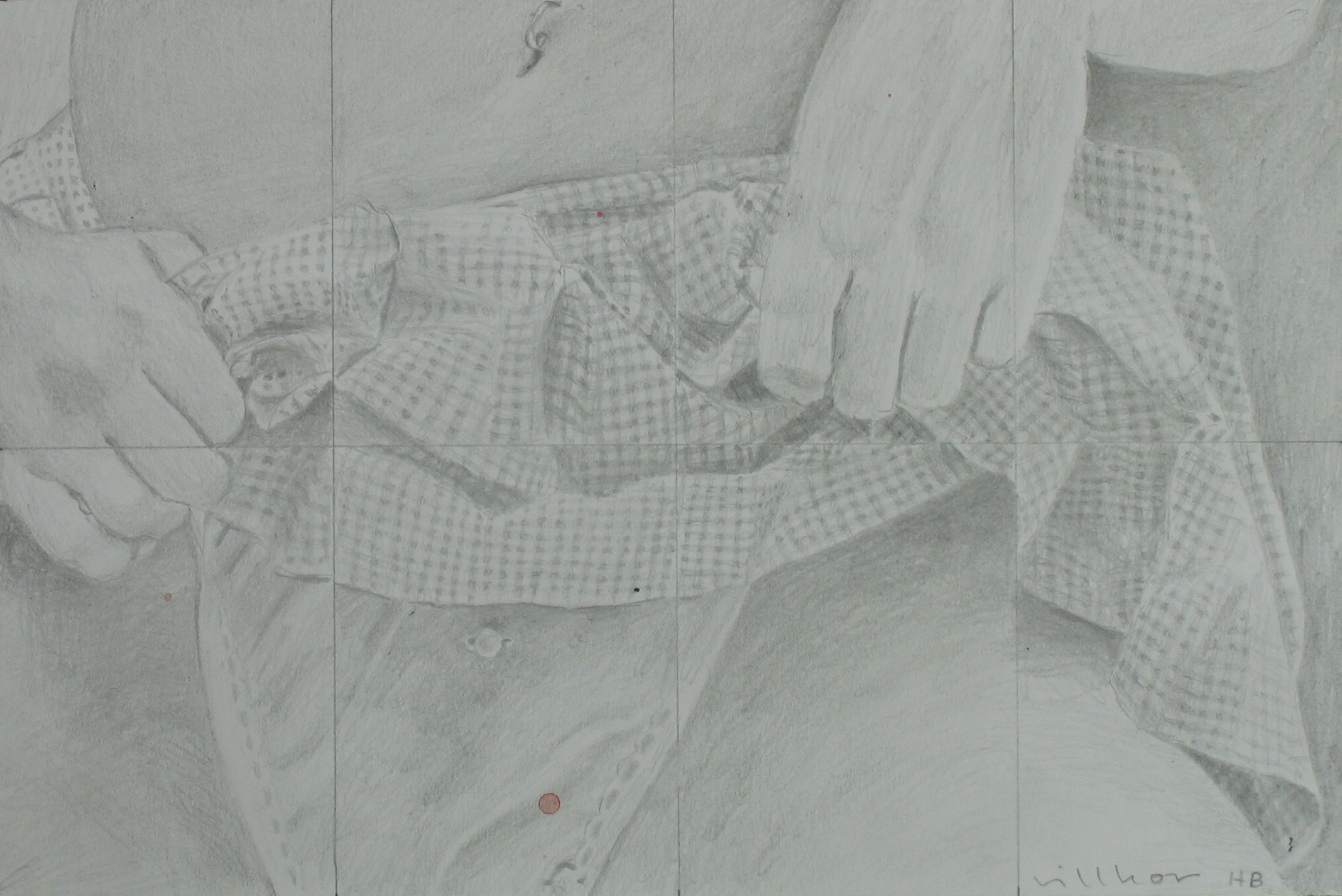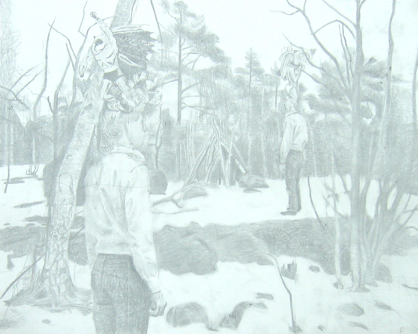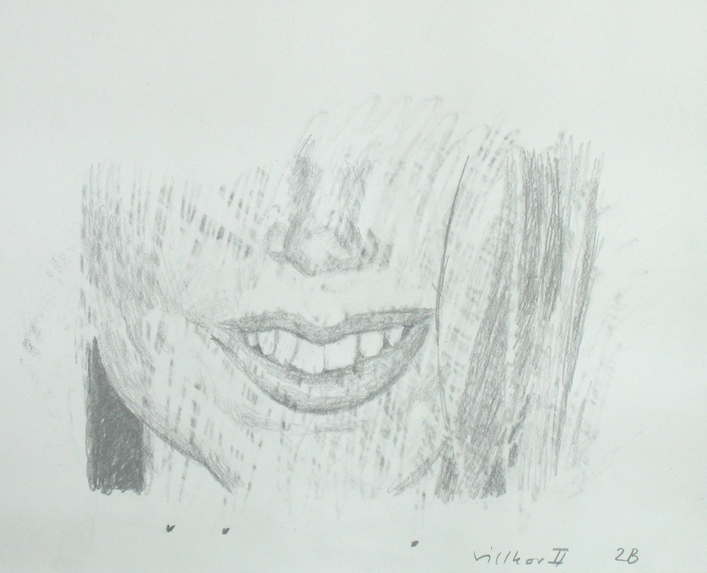 Efter att jag upplevt att de mer fria colladgeartade figurteckningarna liksom var för lättviktiga och inte riktigt tog ansvar för de associationer de gav upphov till, sökte jag en mer koncentrerad och mer koncenterad form. Jag gör utsnitt ur bilder och tecknar av dem för att sedan måla av dessa.
