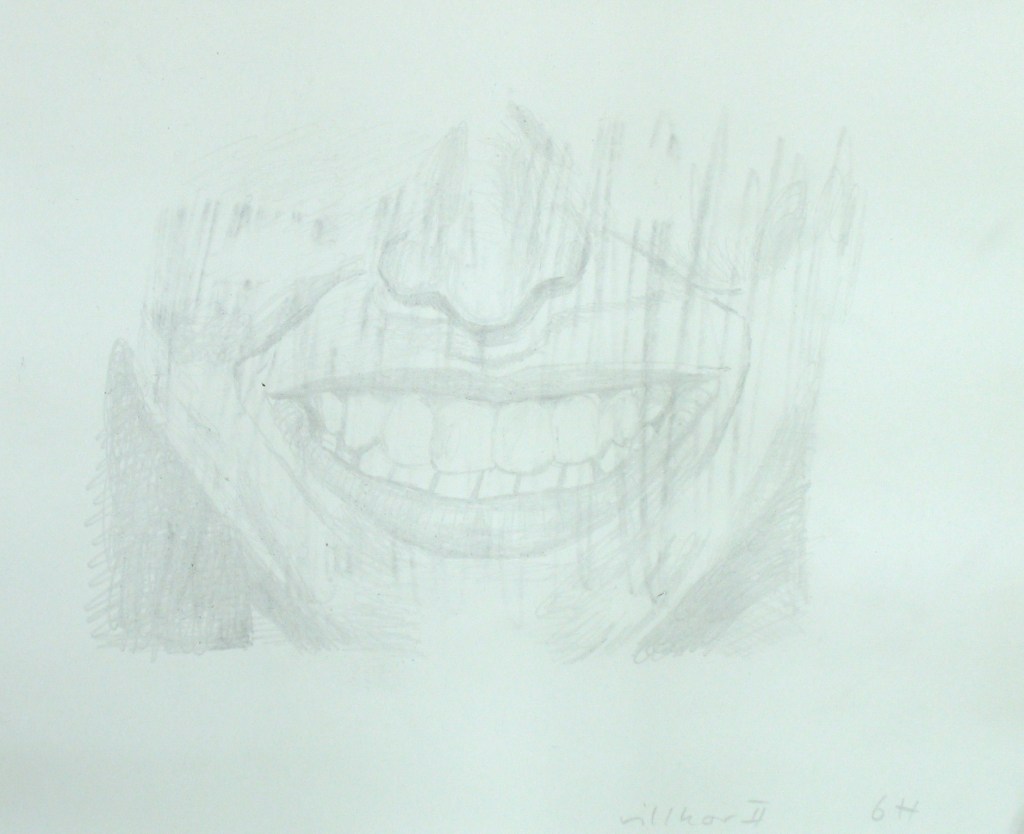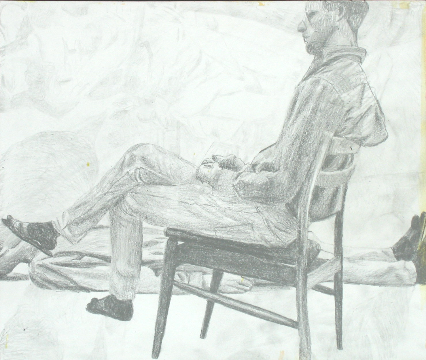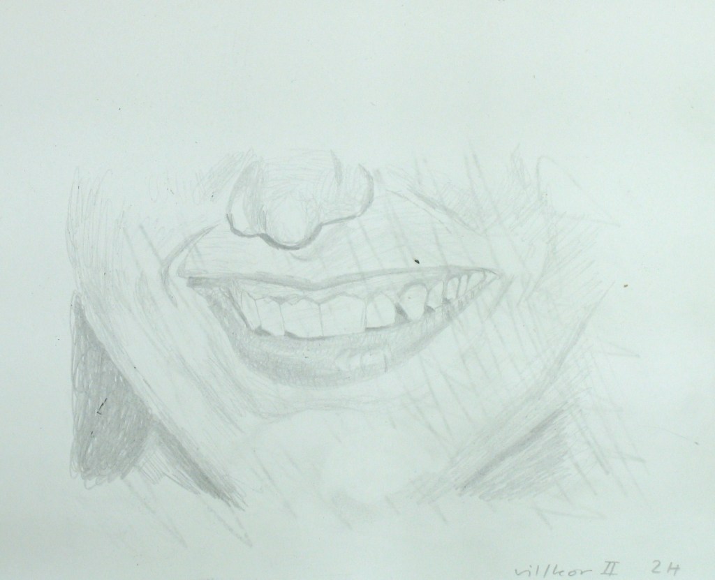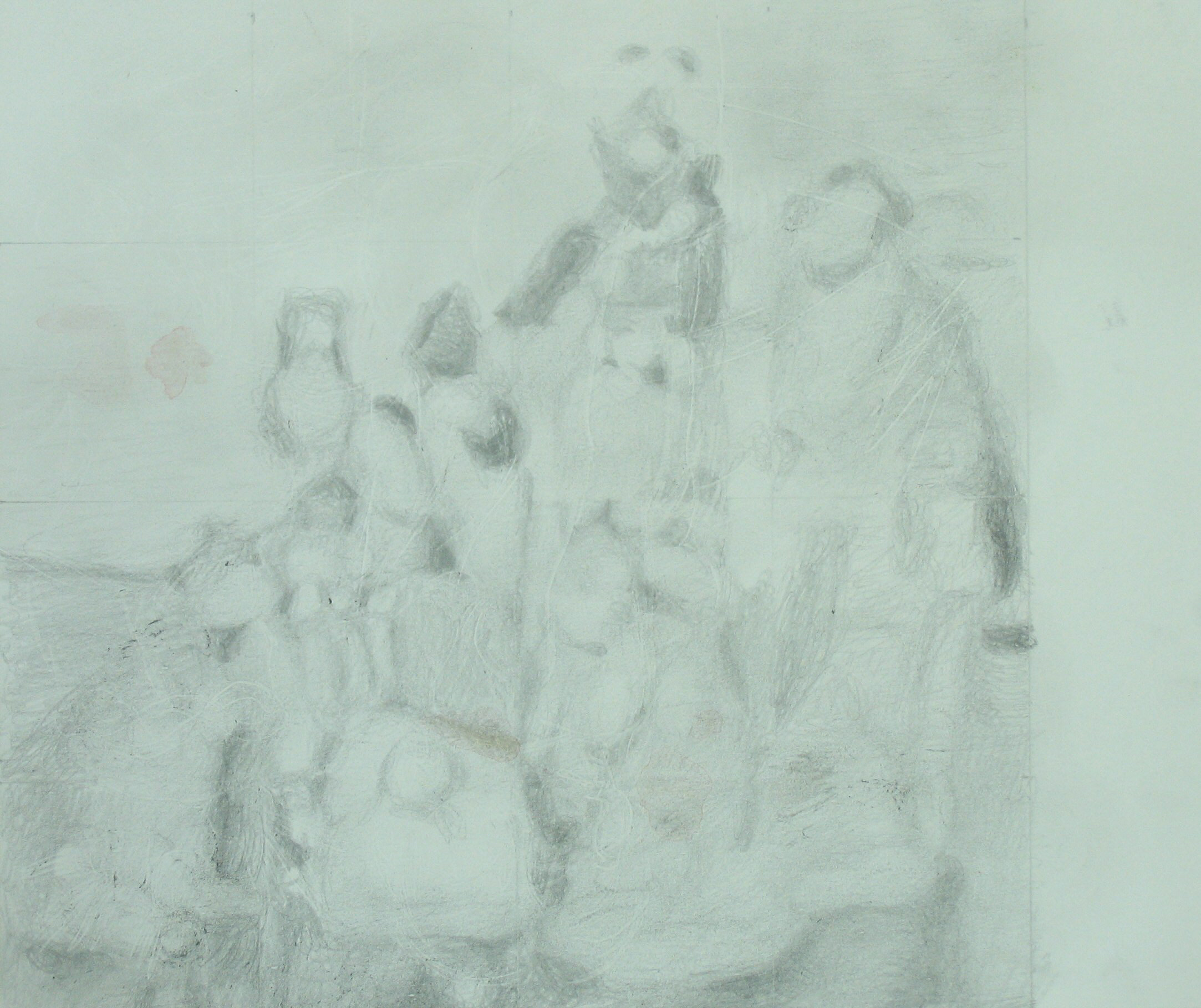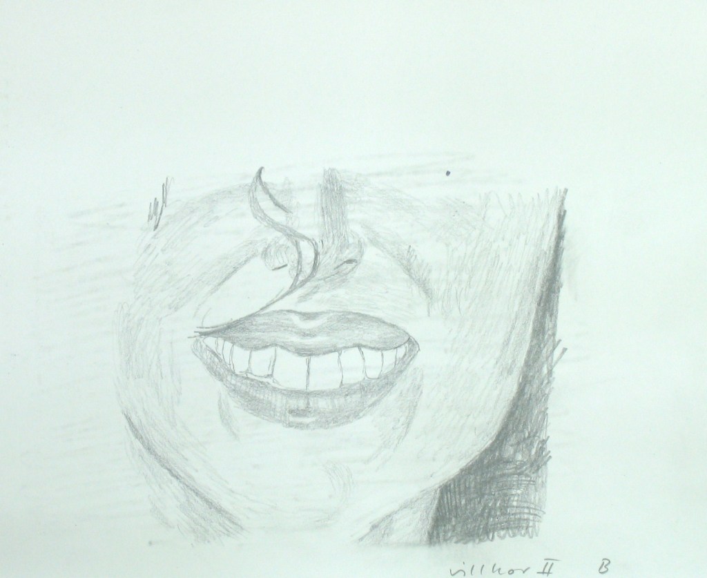 Efter att jag upplevt att de mer fria colladgeartade figurteckningarna liksom var för lättviktiga och inte riktigt tog ansvar för de associationer de gav upphov till, sökte jag en mer koncentrerad och mer koncenterad form. Jag gör utsnitt ur bilder och tecknar av dem för att sedan måla av dessa.
