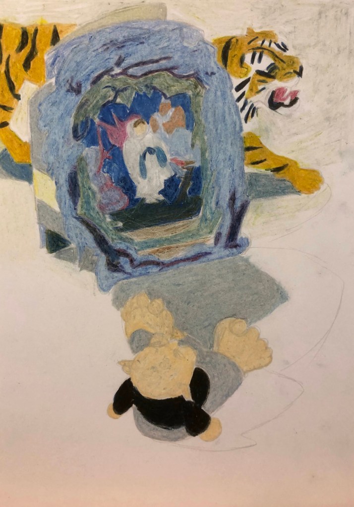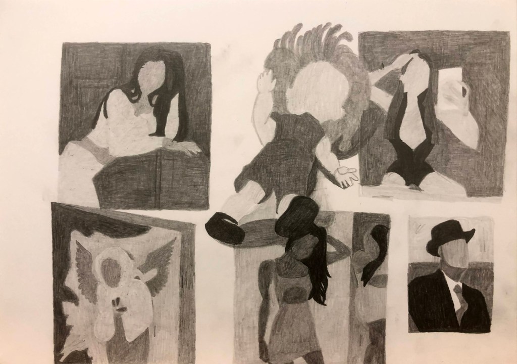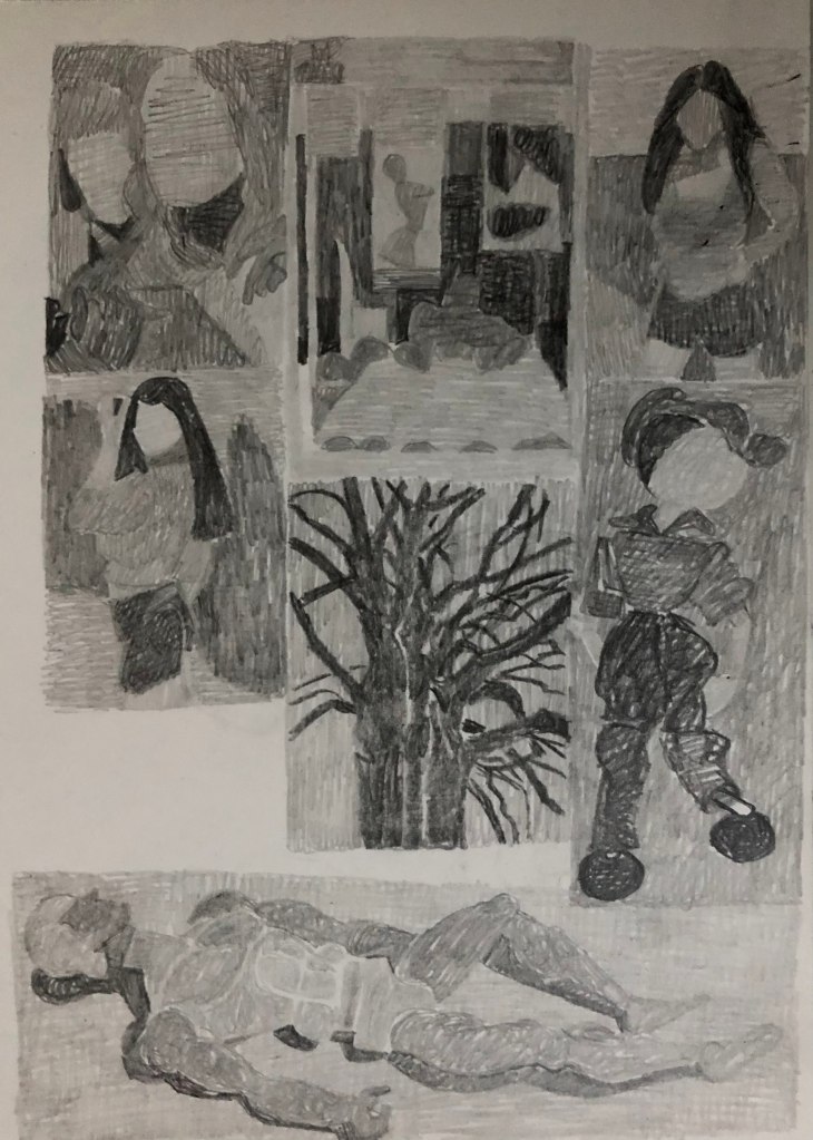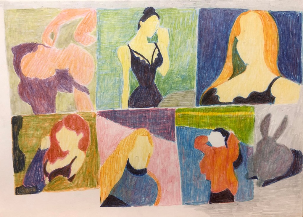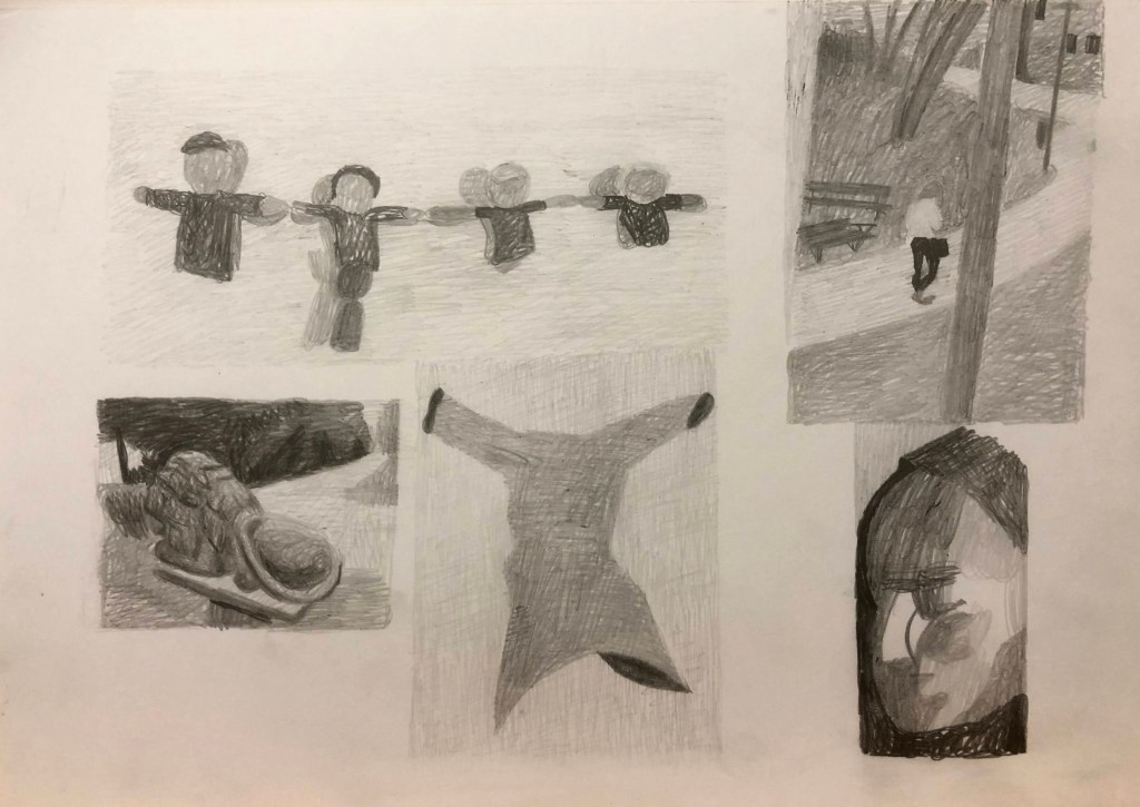 Jag gjorde ett långt uppehåll i mitt konstnärskap, då jag kände att jag inte kunde eller hann göra något. Men men några enkla teckningar fann jag ny energi, det var väl runt 2018. De är fortfarande grunden för det jag gör nu.