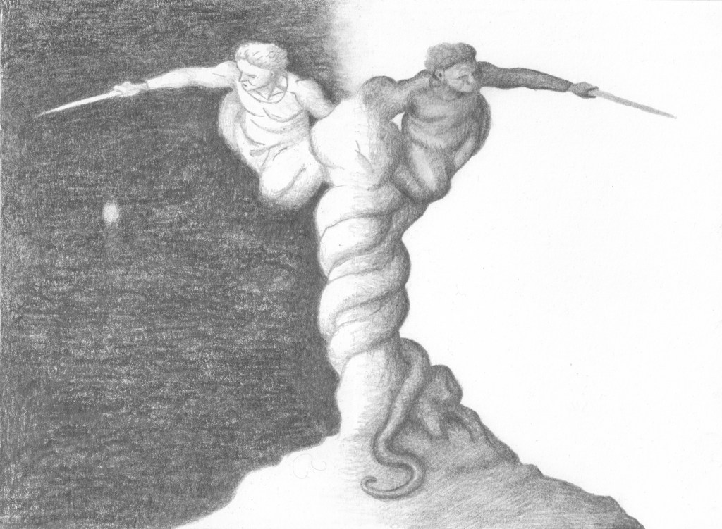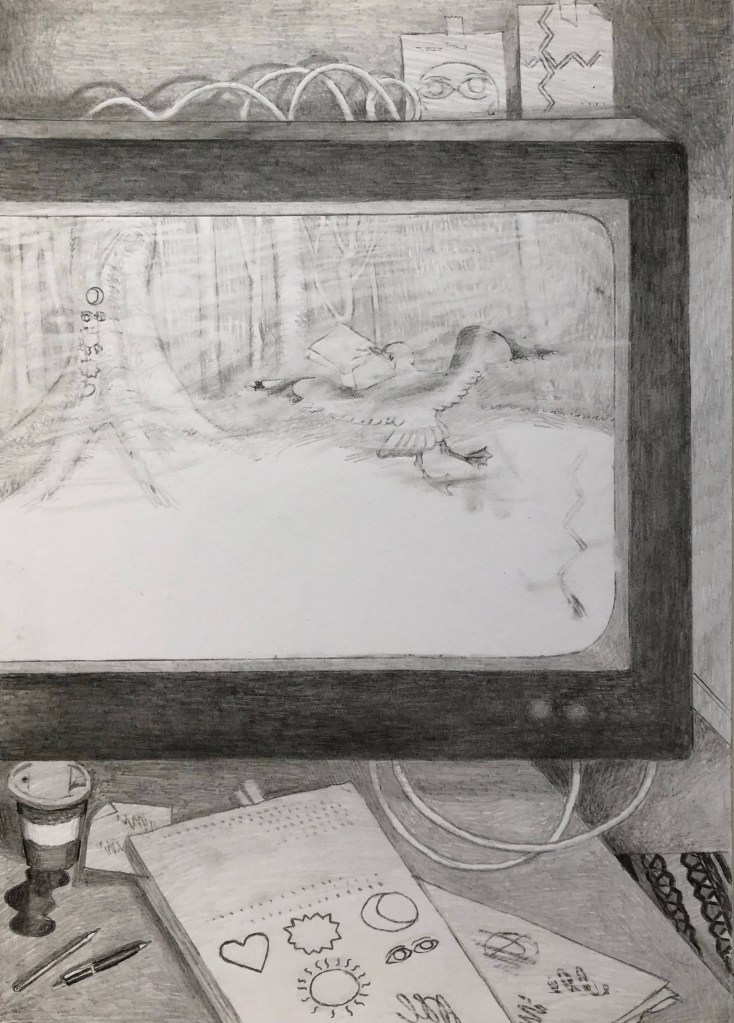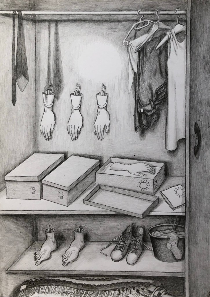 En novellsamling av författaren Mats Kempe från 2014, eller en roman i 16 noveller, utgiven på Norstedts. Illustrationerna användes tyvärr aldrig. Arbetsnamnet var ”Den animerade staden”. Jag gjorde bilder i tre omgångar. Först ett slags mytologiska motiv i spegelvändningar. Efter det en rad mer illustrativa till varje berättelse. Till sist gjorde jag en slags fiktiv serietidning som skulle ha fungerat som omslag plus för- och eftersättsblad.